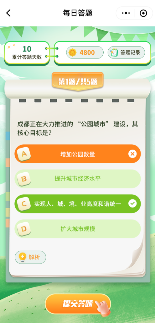 11月4日,为期一个月的“我爱成都 百万师生学环保”2025年中小学生态文明教育系列实践活动的线上答题环节圆满收官。封面新闻记者了解到,答题环节阶段,全市中小学生在题库中解锁环保知识,在答题中比拼实力,每一份积分都藏着对生态文明的热爱。
